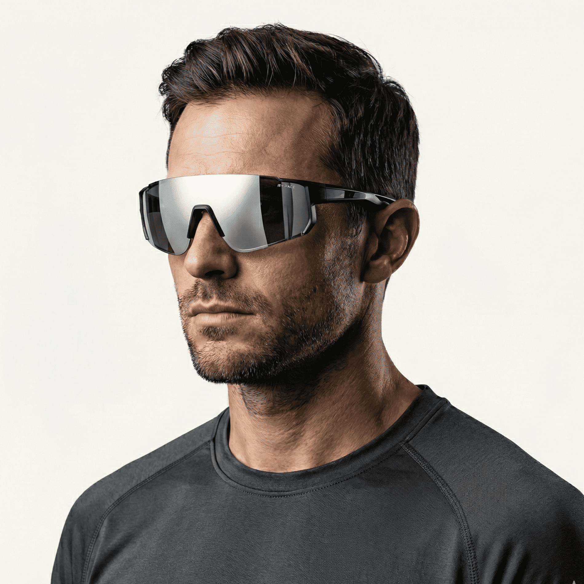 Usamos Policarbonato de alta densidade, muito mais resistente que acrílico comum. Porém, como toda lente espelhada de alta performance, recomendamos não limpar com a camisa suada (o sal do suor e a poeira podem arranhar). Lave com água corrente e sabão neutro para durar anos.